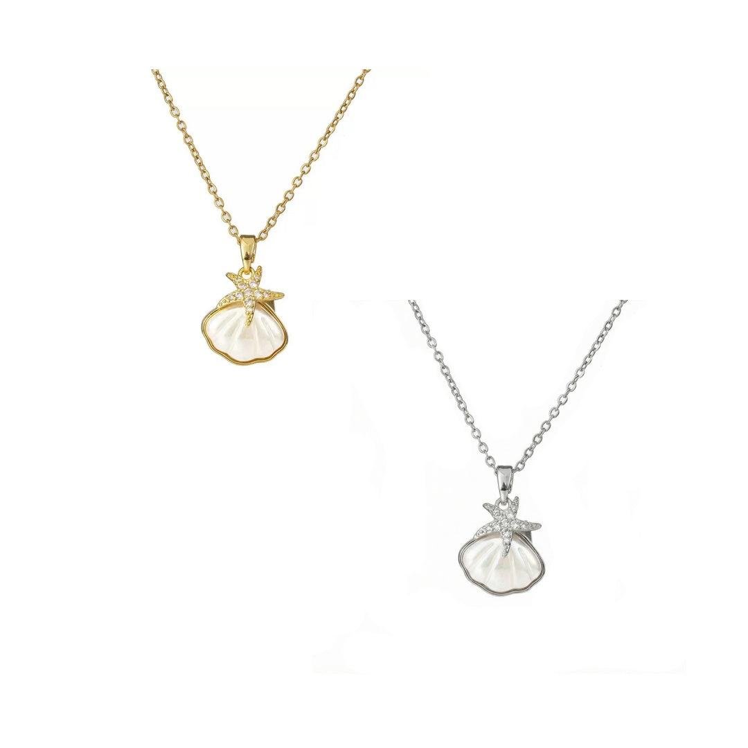 Inspired by the beauty of the ocean, the Starfish & Seashell Pendant Necklace symbolizes freedom, adventure, and the tranquility of seaside life. Its delicate design captures the elegance of marine treasures.