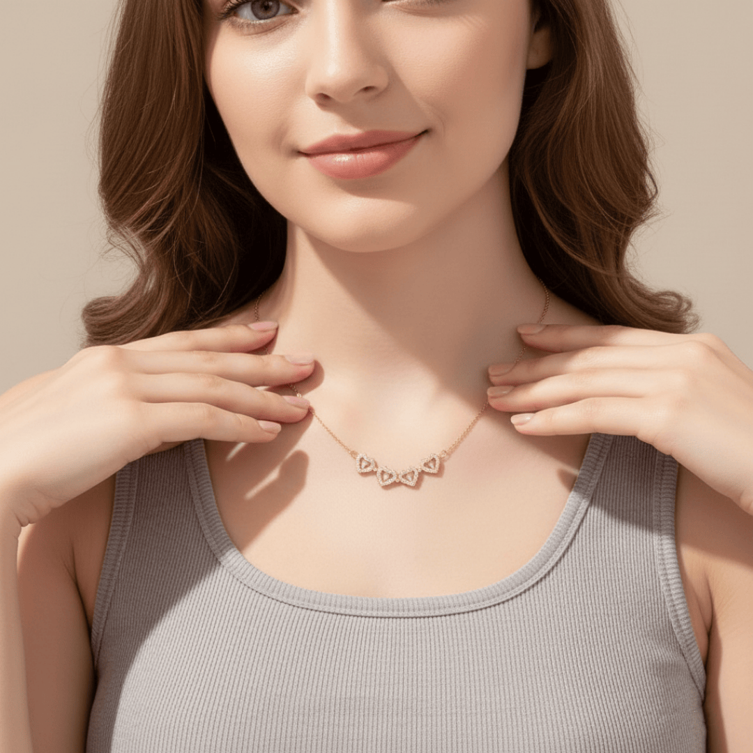 Inspired by timeless symbols of love and luck, our Lucky Heart Necklace features a heart-shaped pendant adorned with sparkling cubic zirconia, capturing the essence of elegance and positivity.
