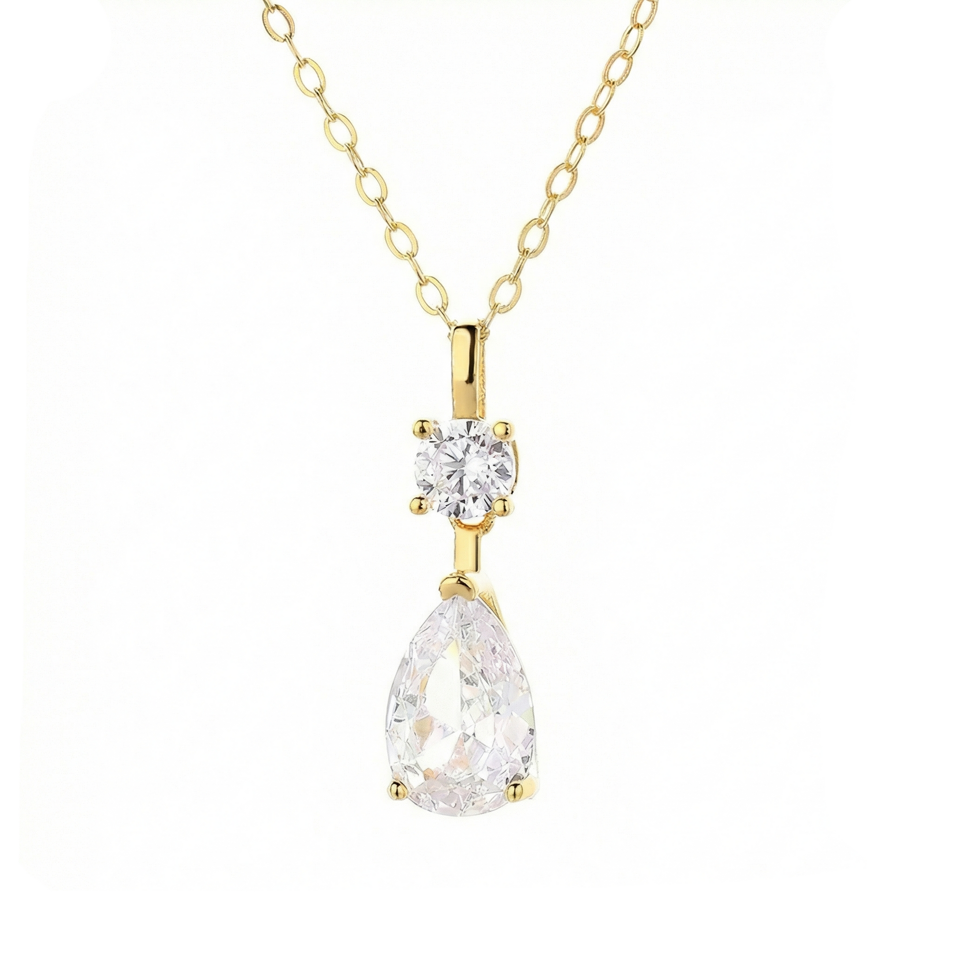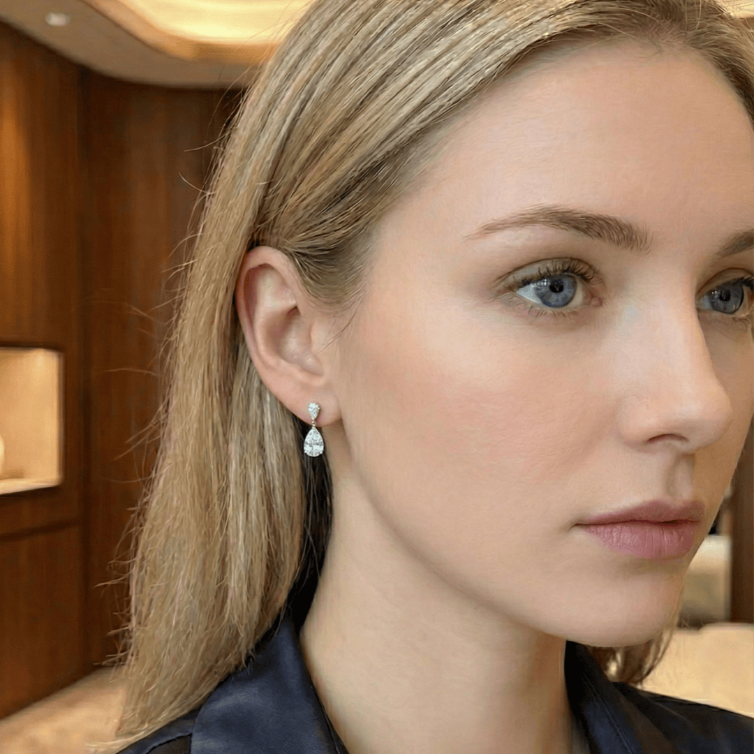 - Stones: AAAAA+ grade pear-cut Cubic Zirconia, diamond-like brilliance
