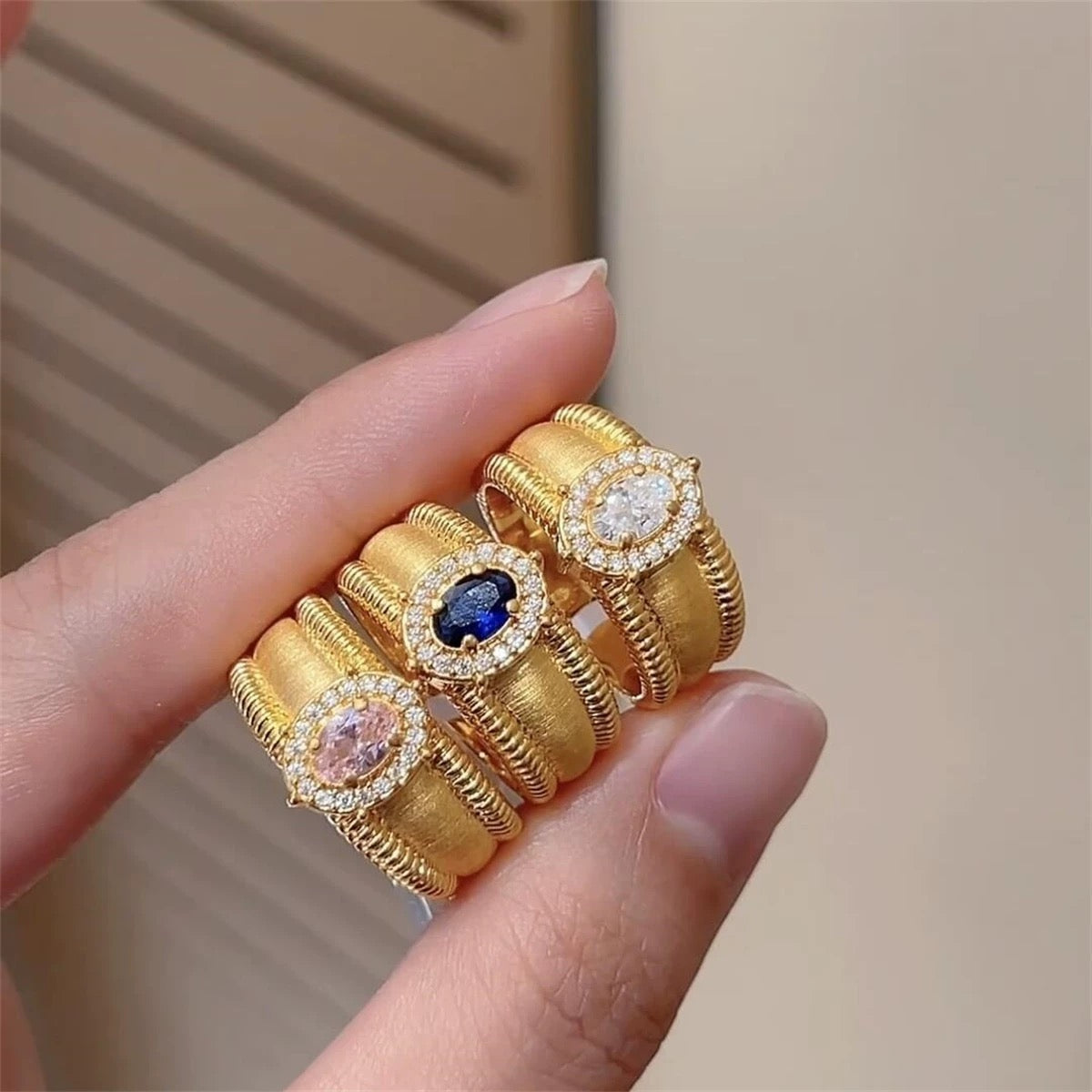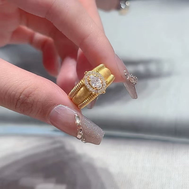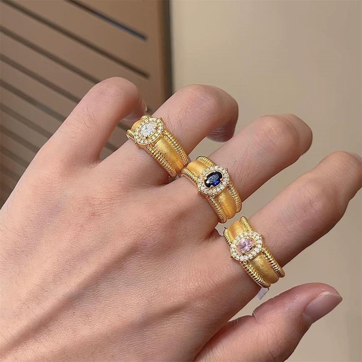 ロイヤルジェムストーンリングは、CotaJewelryによるオリジナルデザインで、永遠の愛とパリのエレガンスから着想を得ています。オープンバンドのデザインは、永続的な誓いと優雅さを象徴しています。