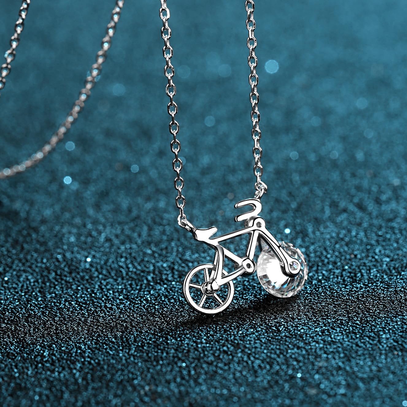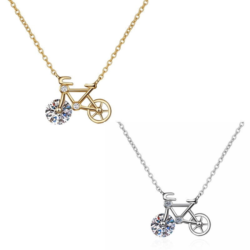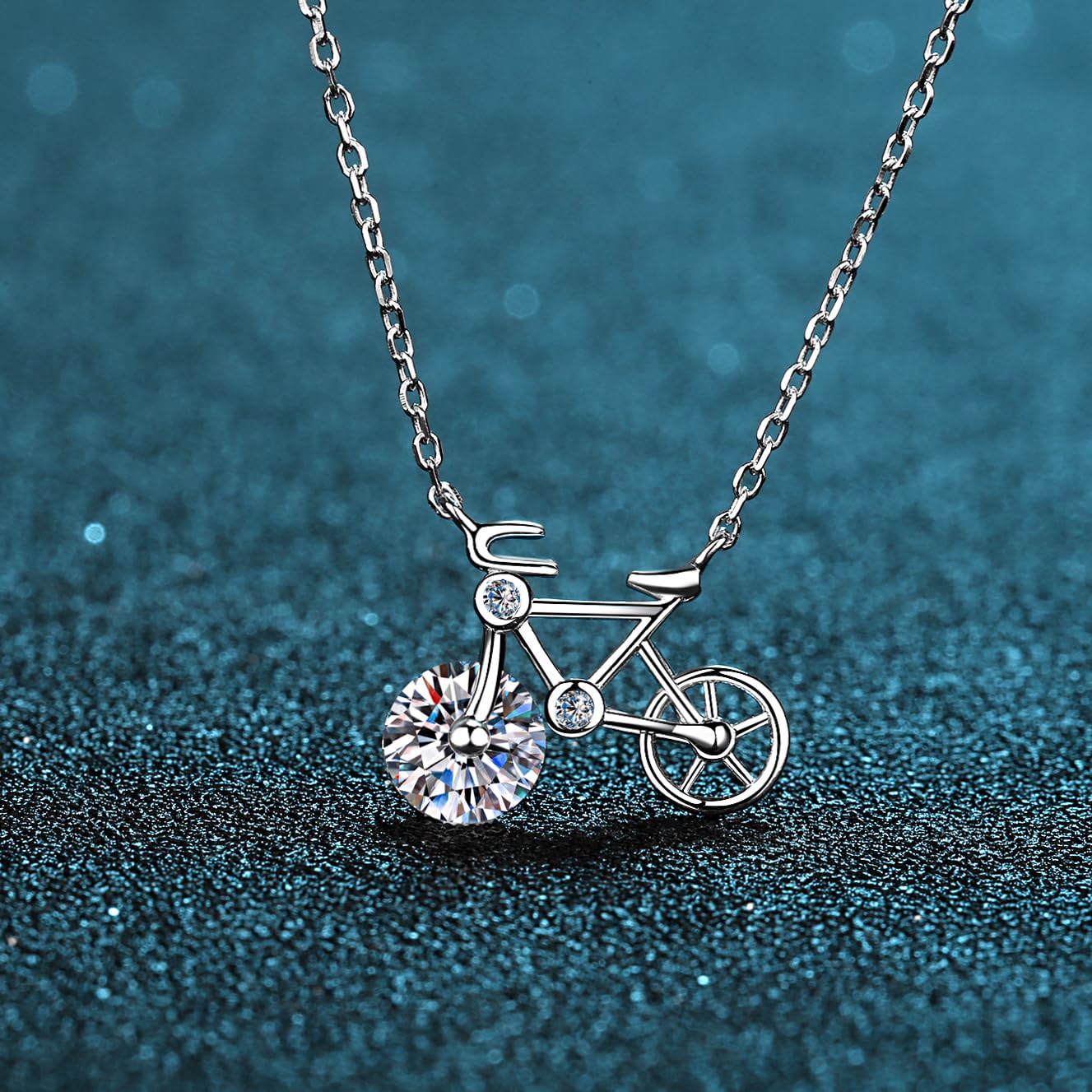 回転する車輪と1カラットのモアッサナイトをあしらった自転車ネックレス | CotaJewelry